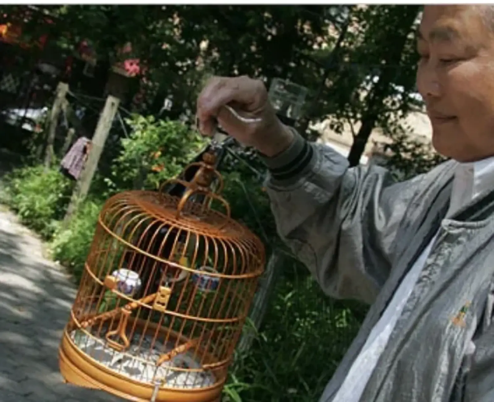 Almost every morning during the warmer months, in the early hours of the day, local residents come to this spot for a traditional Chinese bird-singing contest. The birdsong can be heard regularly. Tai Chi and other Asian art forms are practiced in the park, too. Image from this NY Times article.