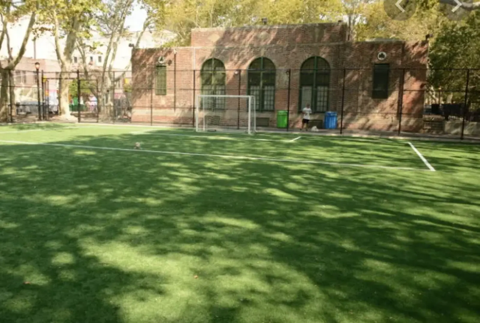 Nike Field is one of three dedicated soccer fields in Sara D. Roosevelt park. Sadly, Nike has been disinclined to maintain it, and it fell into disrepair - it's got new turf again. Artificial turf has its downsides, including overheating, non-recyclability, etc, and shockingly, NYC counts it as green infrastructure.