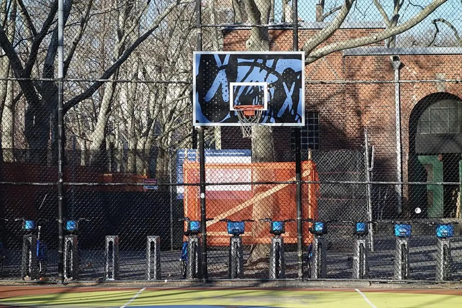 A pair of twin basketball courts sit along Stanton Street as it passes through the park, where teenagers play sports in the morning and afternoon. Photo from Wikimedia