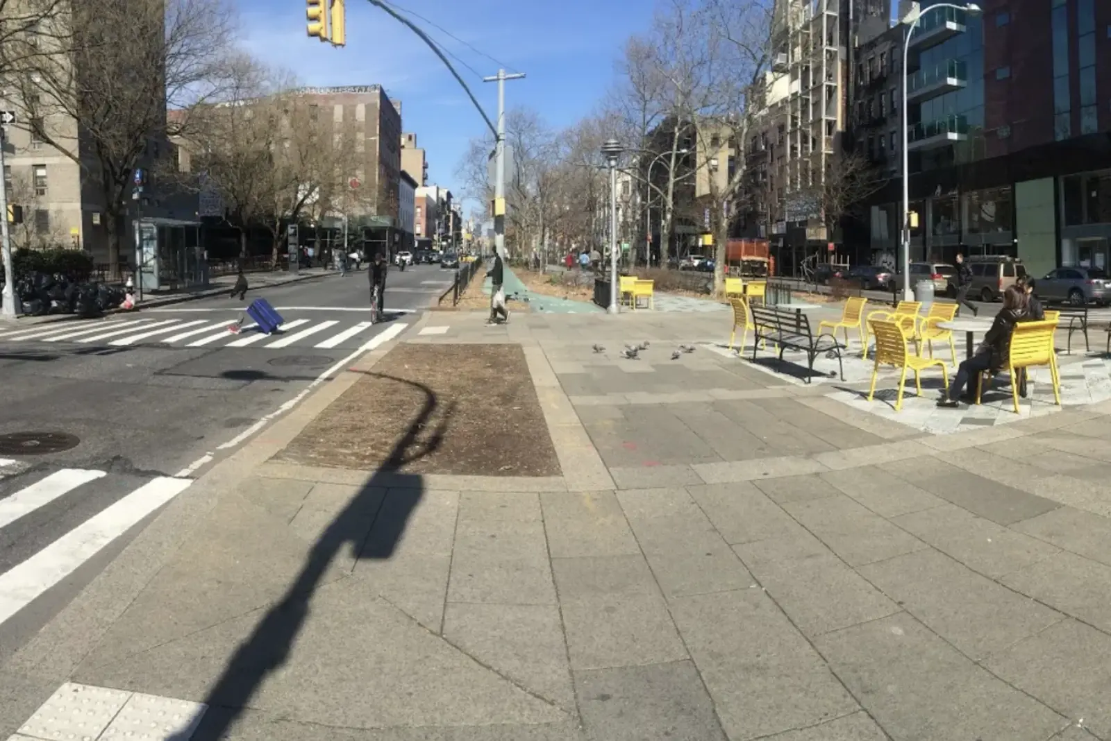 14 blocks of public space, ideal for distancing on foot, by bicycle, skateboard, etc. Running from Houston Street to the East River, it's all contiguous (except the block just north of Delancey). Every block is different - some have recent plantings, seating and paths, others are in 'original condition'.