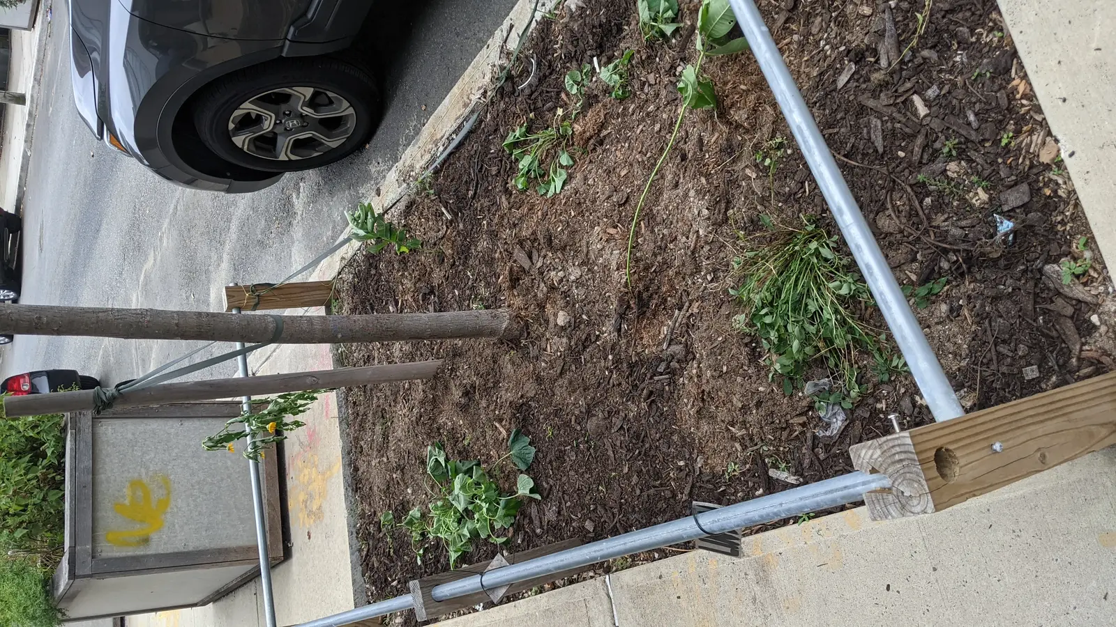 I immediately transplanted bare roots: 2 Jacob's Ladders, a few milkweed and Heliopolis and many violets. One Wood Aster went in as well. prickly pears will callus over and then go into other pits on Carroll, closer to the Gowanus Canal.