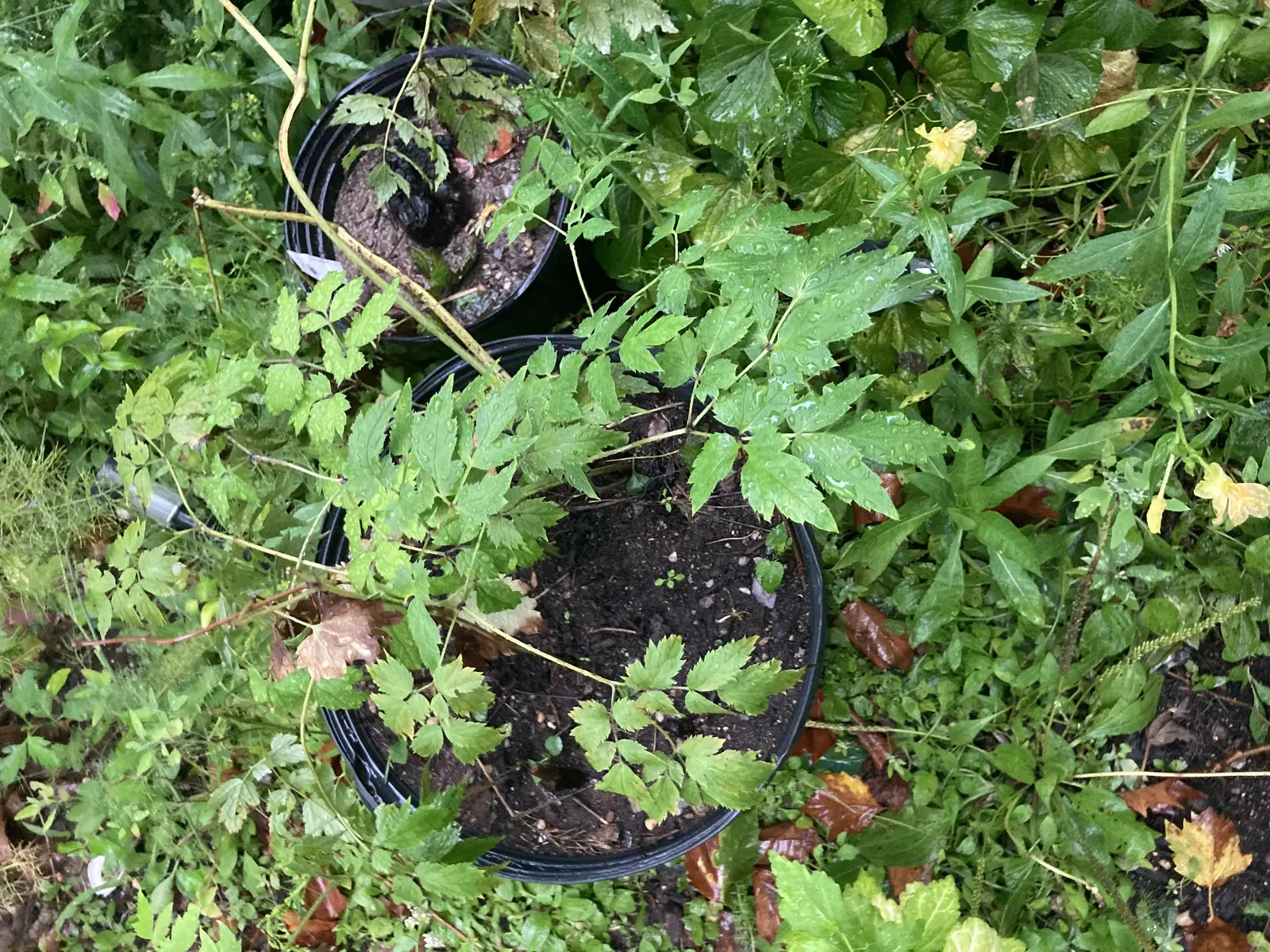 Inland sea oats - to go into one of the 411 sites Heliopsis - in front of London plane tree in 716 plot, also one for 411 Columbine - 716 plot Trout lilies - by neighbor's patio in 716 plot Late boneset - 716 plot and one for 411 Milkweed - for 411 Asters - 716 plot and a bunch for 411 Golden Alexanders - not sure we took that Virginia bluebells - in a pot to be planted in 716 plot Black cohosh - in a pot to be planted either in 716 plot or in El Jardin del Paraiso medicinal plot Wood sorrel - 716 plot and a bunch for 411